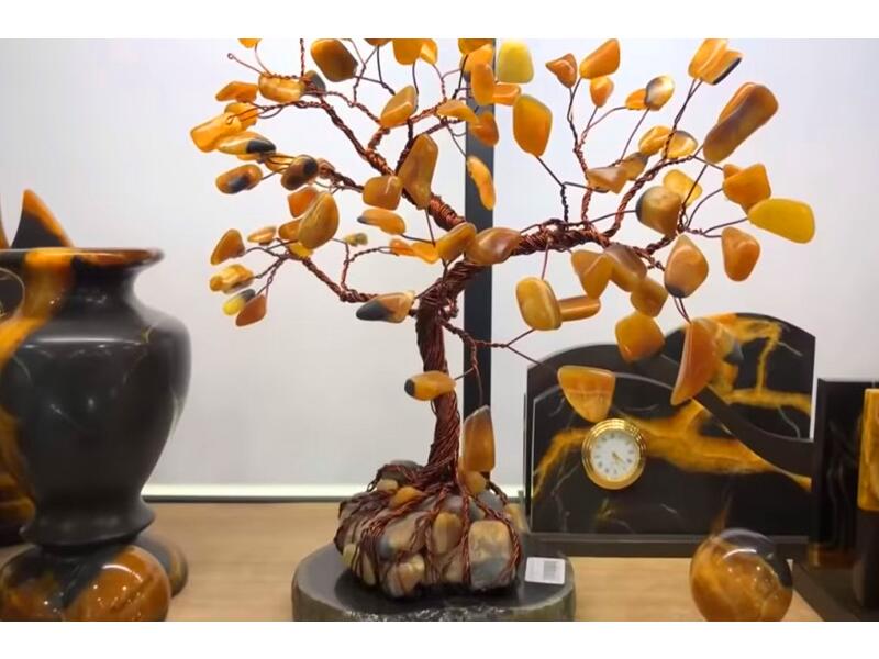 Что такое симбирцит? Это камень, носящий имя города и внешне похожий на янтарь. Он отличается мягким оранжевым свечением и неповторимым узором на поверхности. Считается, что симбирцит обладает магическими свойствами, одаривая спокойствием и хорошим настроением не только владельца, но и окружающих людей. Сейчас симбирцит стал одним из главных брендов Ульяновска. В городе установлен памятник камню – гигантская раковина аммонита, заполненная разноцветными кристаллами.Экспозиции музея симбирцита ярко и красочно описывают историю образования и обработки поделочного камня, способы использования его в камнеобрабатывающем промысле.Салон предлагает изделия из симбирцита – столешницы, крупные вазы, корпуса часов, запонки, броши, серьги, кольца, подвески. Купите себе в подарок застывший кусочек солнца и носите его постоянно. Магия камня создаёт у человека прилив сил, наделяет верой в себя. Даже прикосновение к этому тёплому, приятному на ощупь камню поднимает настроение.